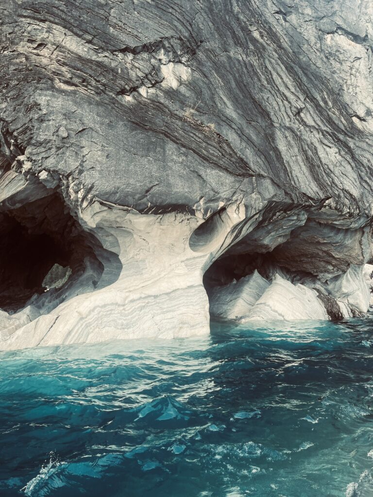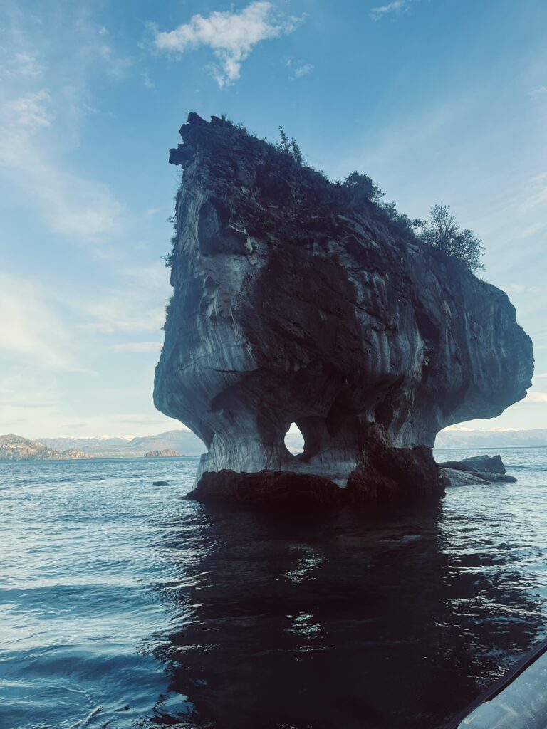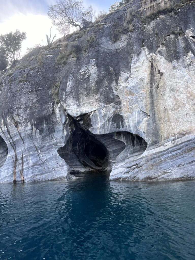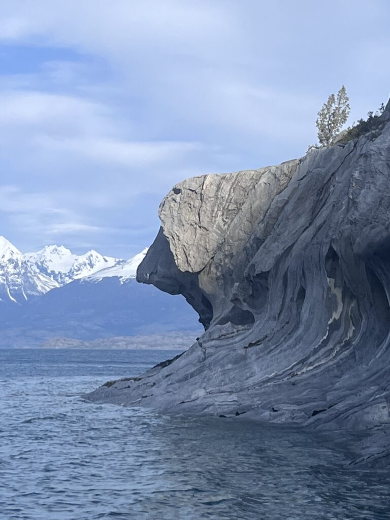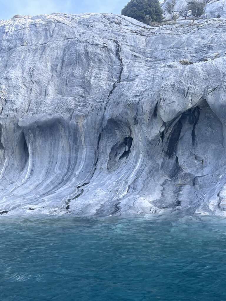 Declaradas Santuario de la Naturaleza con el fin de protegerlas, estas formaciones minerales se han ido erosionando a lo largo de millones de años producto del agua y el viento, dejando al descubierto el mármol y formando figuras y paisajes inigualables. A una de las formaciones le llaman La Catedral de mármol, puedes ver también el perfil de un perro…. hay para elegir. Y si tienes suerte y miras a lo alto de los acantilados que bordean el lago, verás a los cóndores volar y refugiarse en sus nidos. Es algo absolutamente increíble. Nos contaba el guía que el cóndor tiene una única pareja toda la vida y que si la hembra muere, el macho se eleva hasta una altura considerable y se tira en picado a morir. No sabemos si será verdad pero qué historia más bonita para ambientar la visión de sus majestuosos vuelos.