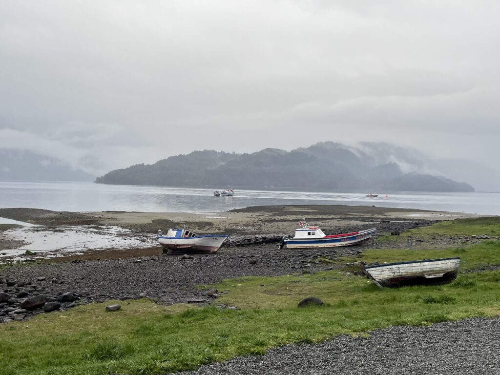 Salimos desde Chaitén hacia Caleta Gonzalo, un trayecto de aproximadamente 1 hora en carretera de ripio en muy malas condiciones, pero con un paisaje sublime. Aquí embarcaremos para cruzar al otro lado del fiordo.